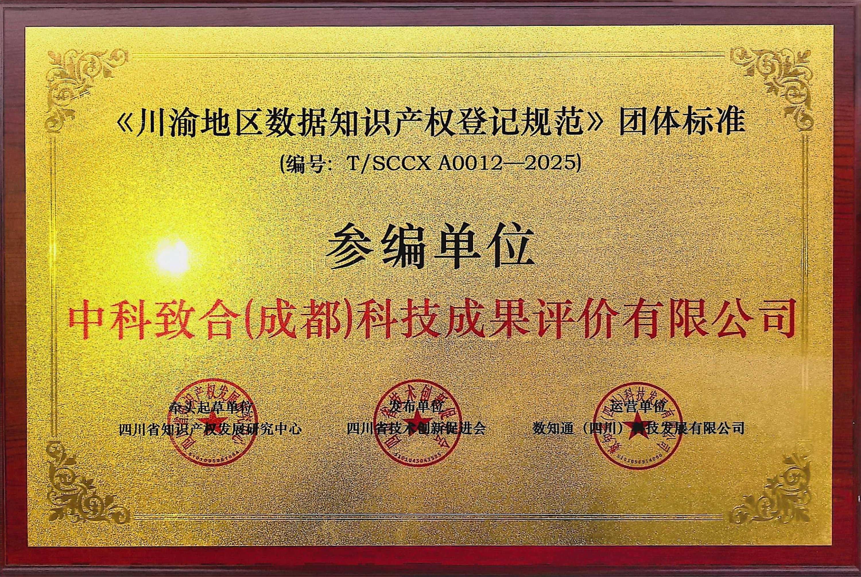 中科致合(成都)科技成果评价有限公司专注于科技成果评价、技术转移转化、知识产权全链条服务,以 “链接创新资源、赋能成果转化” 为使命,长期为高校、科研院所、科技企业提供专业服务。此次参编《川渝地区数据知识产权登记规范》团体标准,是公司在知识产权服务领域的重要突破,标志着公司在数据知识产权领域的专业能力获得行业权威认可。