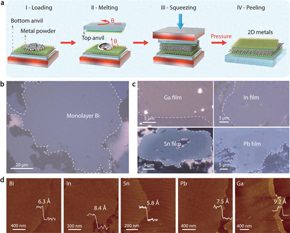 范德华挤压技术普适制备埃米极限厚度二维金属。